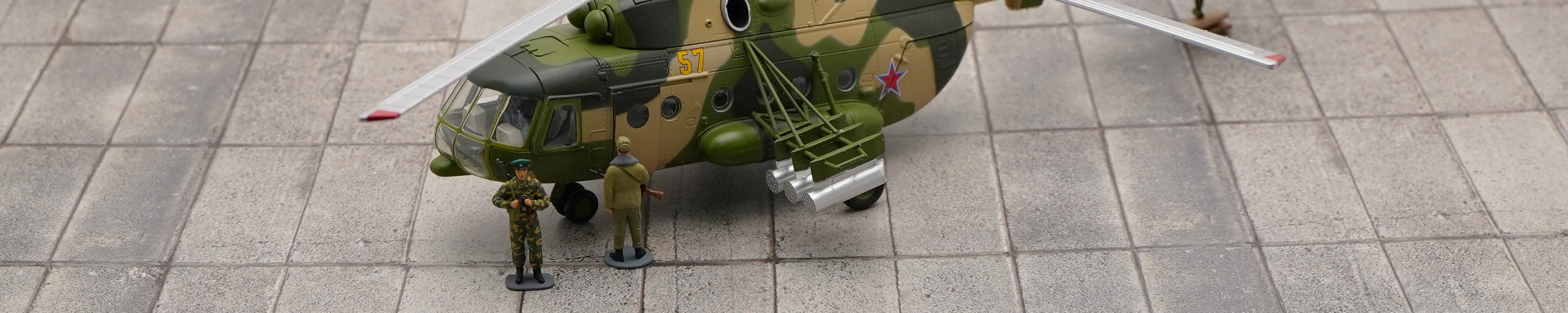 На этой страницы вы найдёте, модели вертолётов. Такие как Ми-24, Ми-8, Ми-17, Ми-4, Ка-50, и другие. Они станут прекрасным подарком или предметом коллекционирования. Эти модели вертолетов выполнены с особой точностью, и копируют в точности модель. Модели окрашены в оригинальные цвета своих реальных машин. Здесь представлены вертолеты России, и вертолеты СССР. Они упакованы в красивую, дизайнерскую коробку, которая сохранит их для вас на долгие годы.