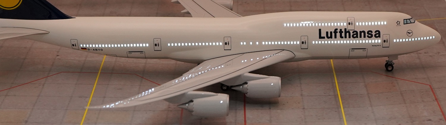 Новый возможности у последних моделей самолётов с подсветкой. В отличии от старых моделей у этих самолётов иллюминаторы и кабина пилотов стеклянные а не нарисованные. Есть возможность зажечь иллюминаторы, достаточно хлопнуть в ладоши и иллюминаторы включатся, особенно это красиво смотреться в темноте. В сам самолёт в строен аккумулятор от которых и работают иллюминаторы, он заряжается от USB. Также у модели имеются шасси, самолёт может быть установлен на подставку, или на колеса. Колеса у самолётов крутятся, на шасси одеты резиновые шины.