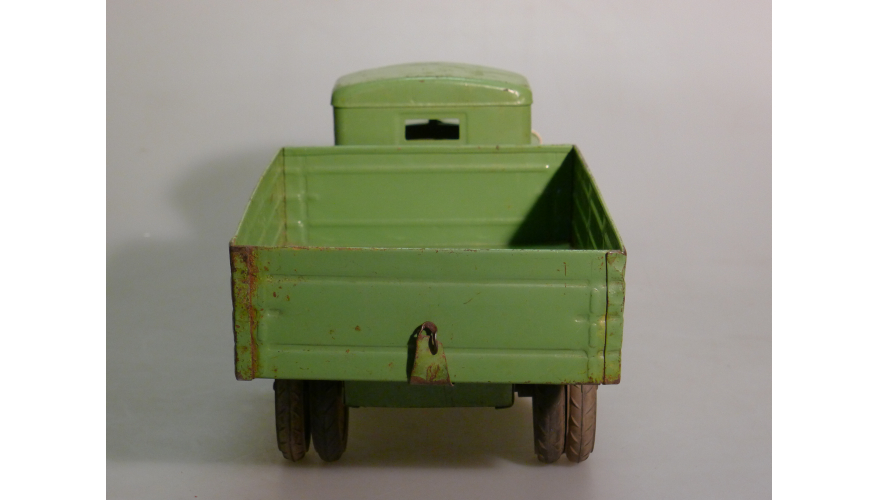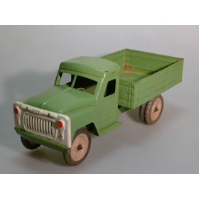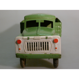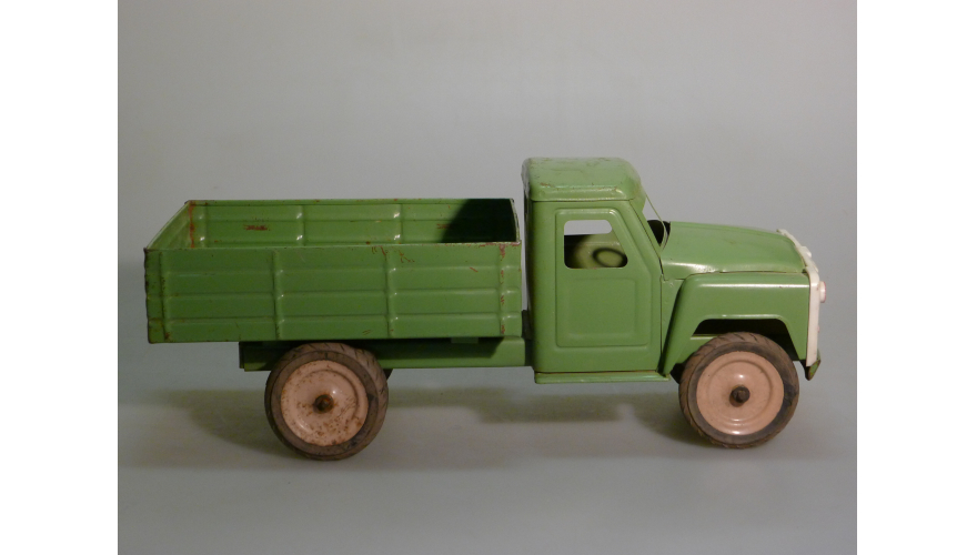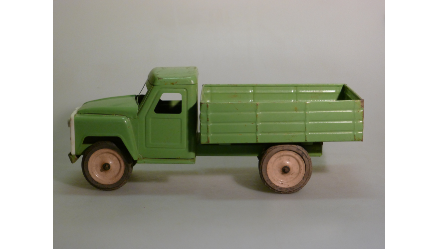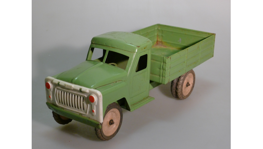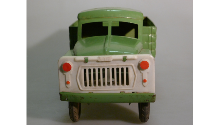 Игрушка производства СССР 70-80 годы. Большой жестяной грузовой автомобиль Газ, зеленого цвета. Длина 49 см., высота 20 см., ширина 20 см. Игрушка не продается, коллекция музея «ХОББИПЛЮС».