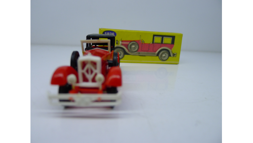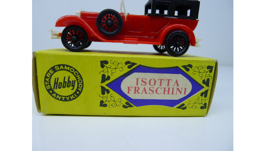 Масштабированная игрушка автомобиля ISSOTA FRASCHINI красная 1926 года. Изготовлена в Польше ESTETYKA в 80 годах.