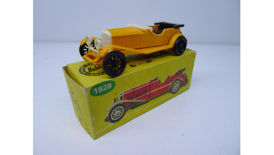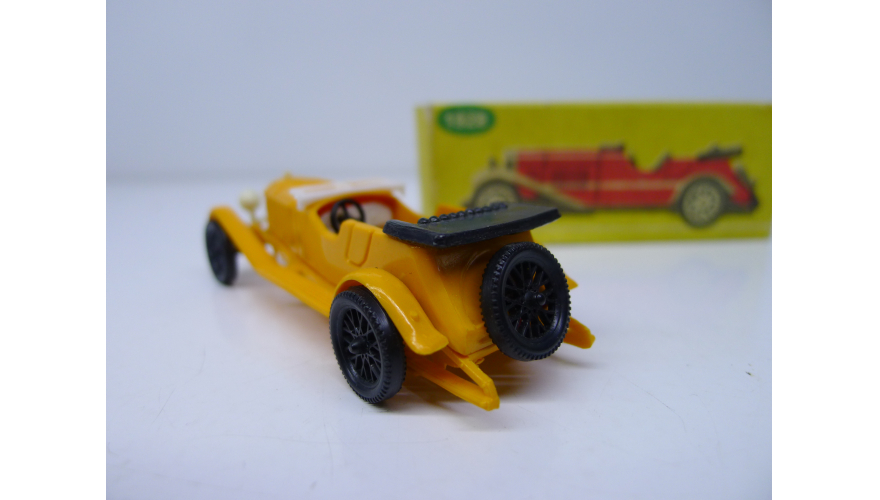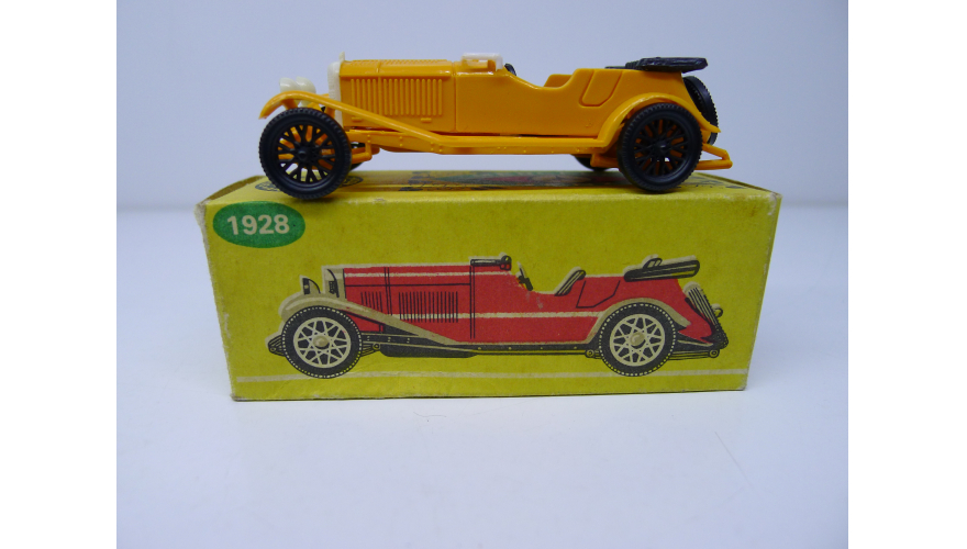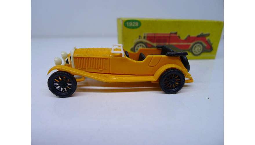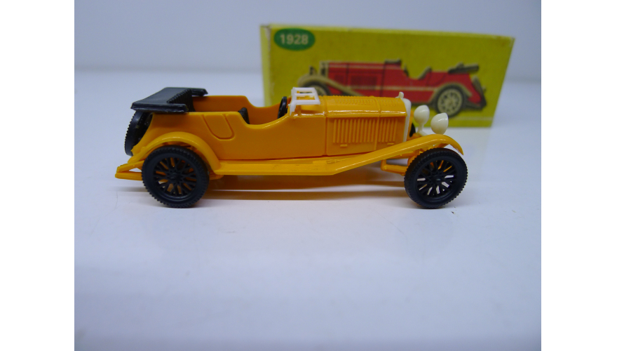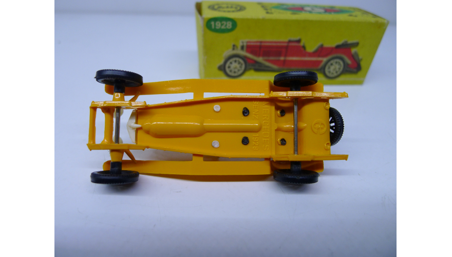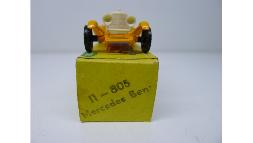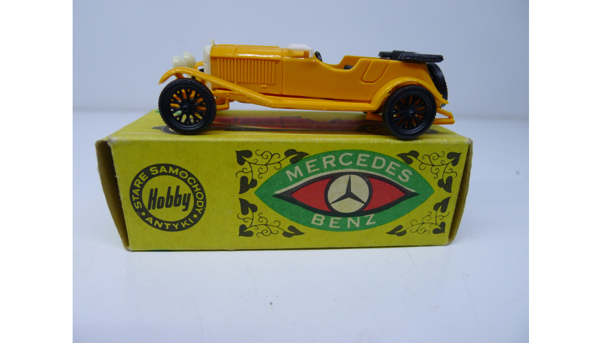 Масштабированная игрушка автомобиля MERCEDES BENZ жёлтый 1928 года. Изготовлена в Польше ESTETYKA в 80 годах.