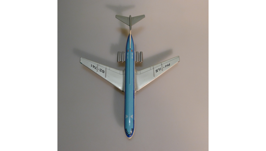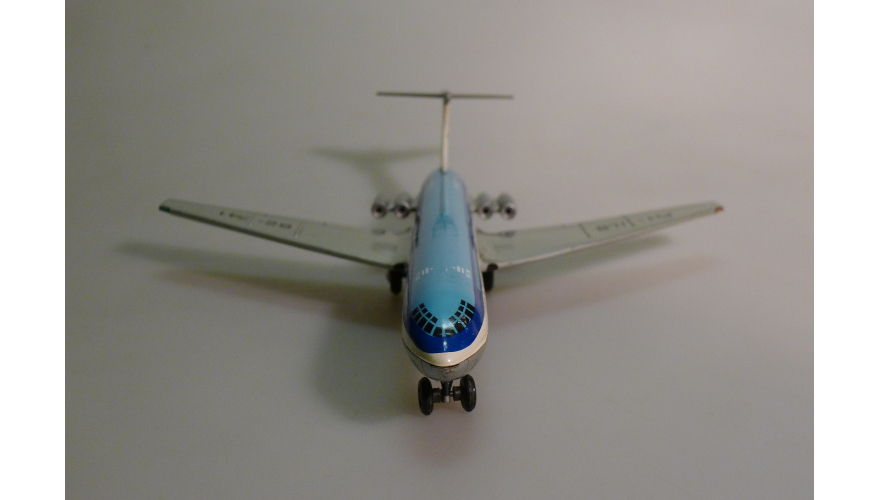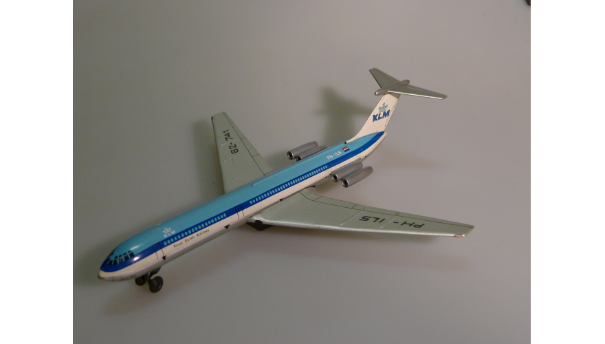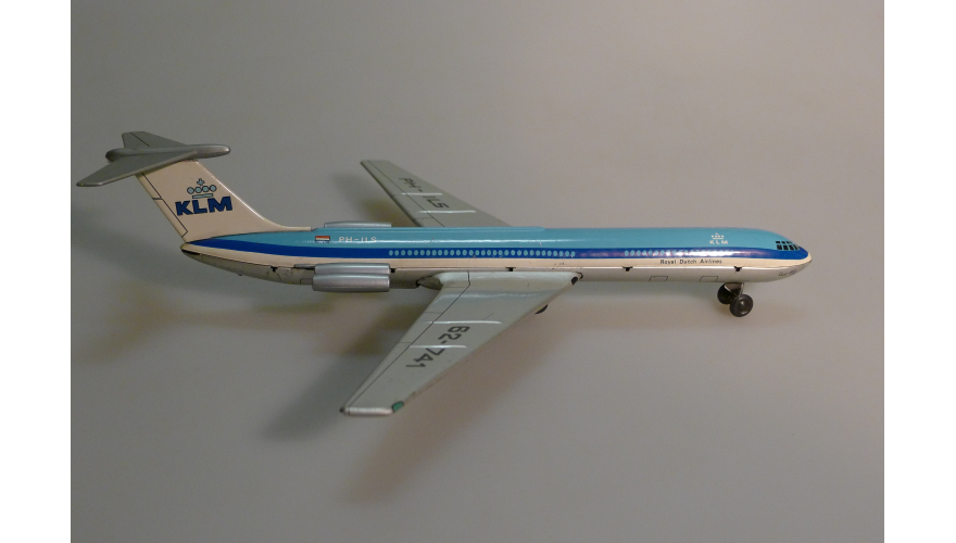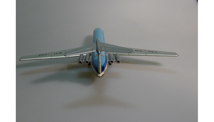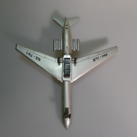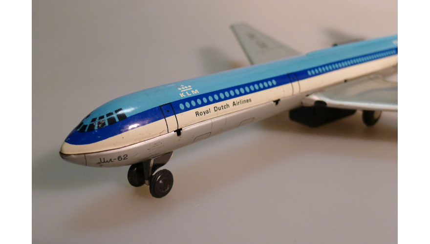 Жестяная игрушка самолета Ил-62 сделанная в ГДР, в 70-80. Длина 18 см., высота 7 см., ширина 8 см. Самолет Ил-62 Королевские авиалинии Дании. Игрушка не продается, коллекция музея «ХОББИПЛЮС».