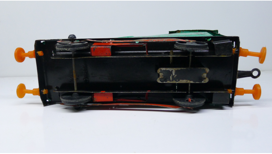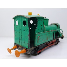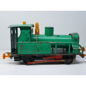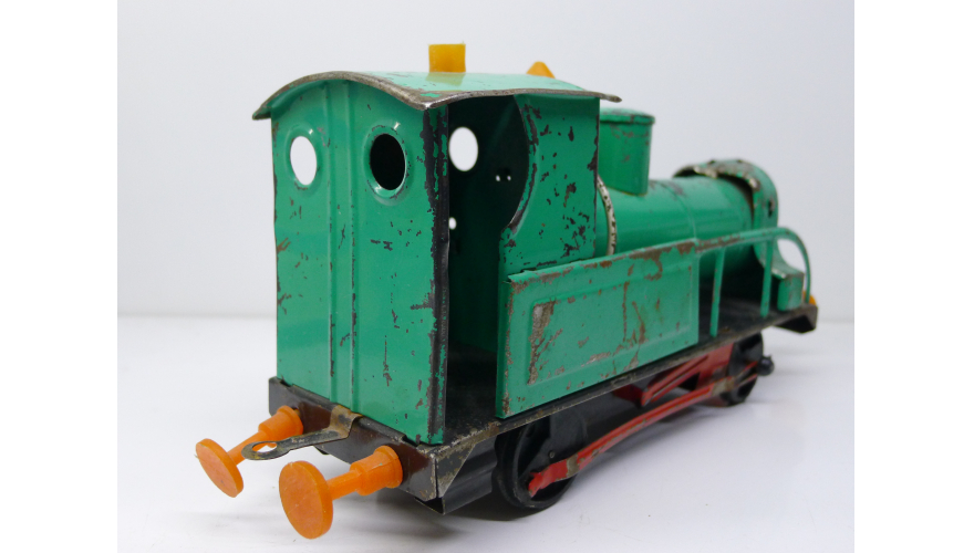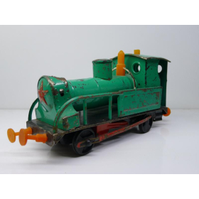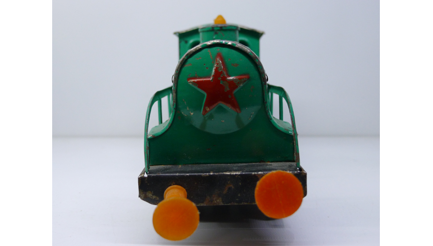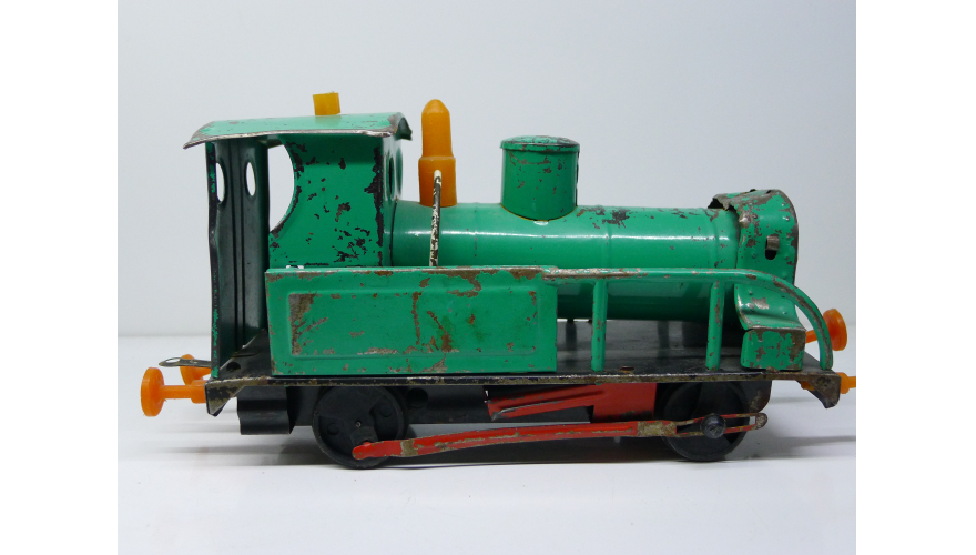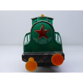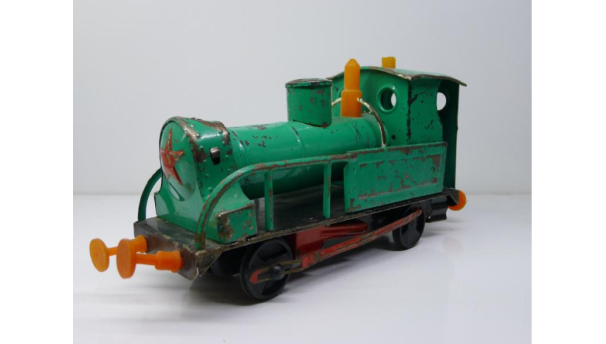 Советская игрушка, жестяной паровоз, зеленого цвета. Сделанный в СССР в 80 годах.