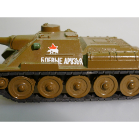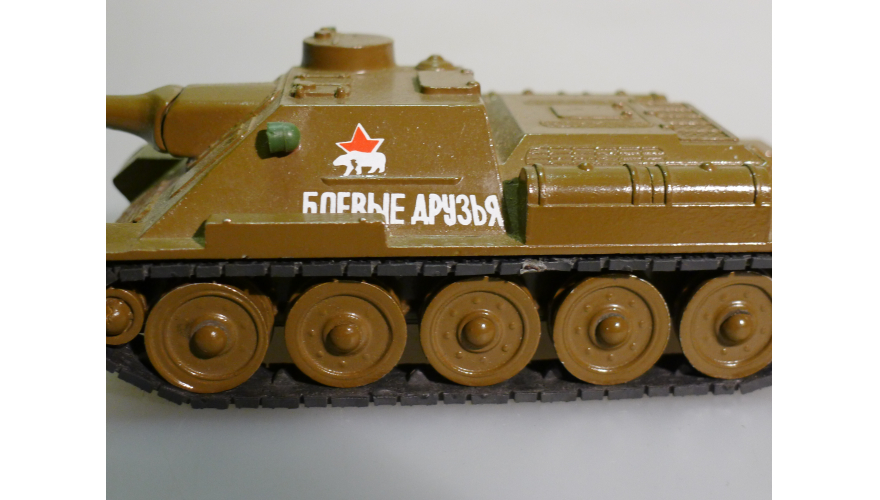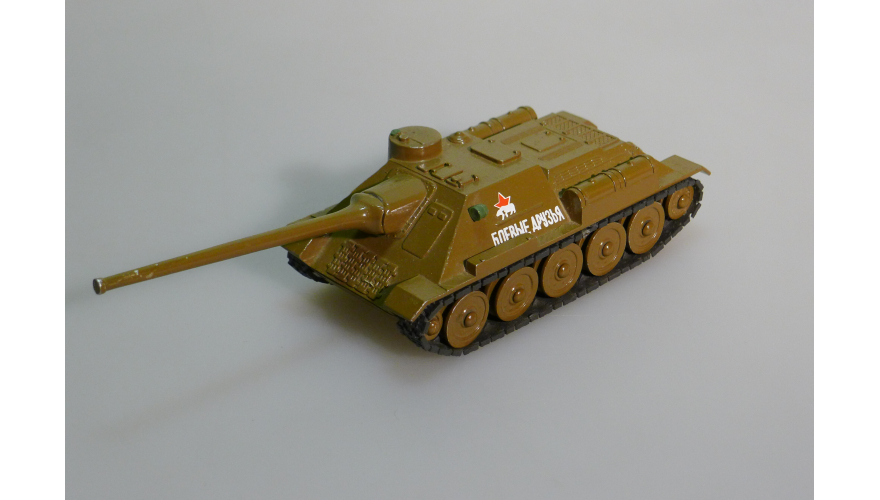 Коллекционная модель, сделанная в СССР в 80 годы, самоходка СУ-100 боевые друзья, масштаб 1:43. Модель не продается, коллекция музея «ХОББИПЛЮС».