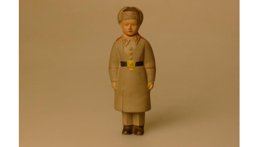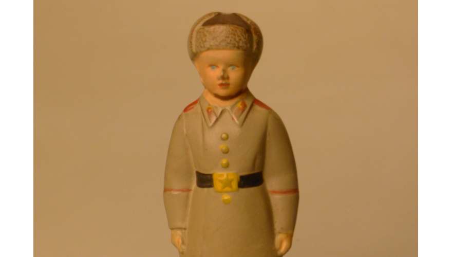 Игрушка резиновая, суворовец, ширина 6 см, высота 16 см. Сделана в СССР 60-70 г.
