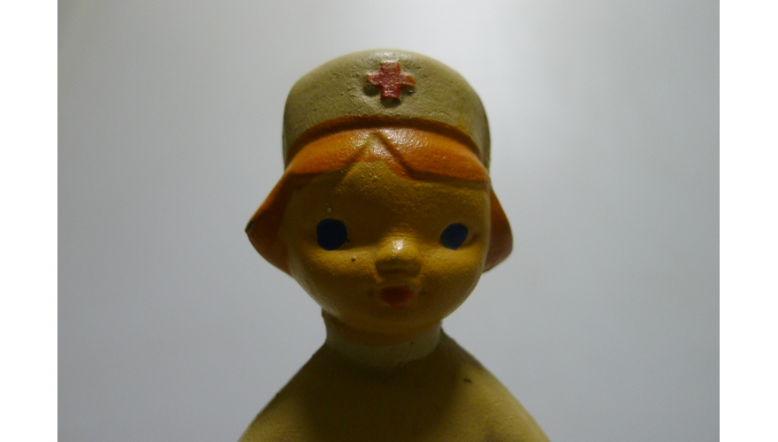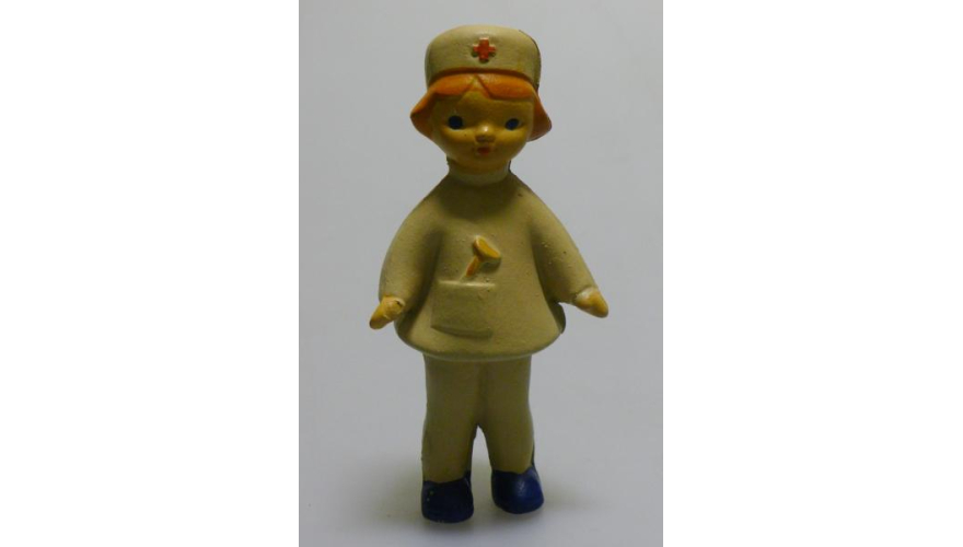 Резиновая игрушка девочка медсестра. Сделанная в СССР 70-80 г. Высота 16 см.