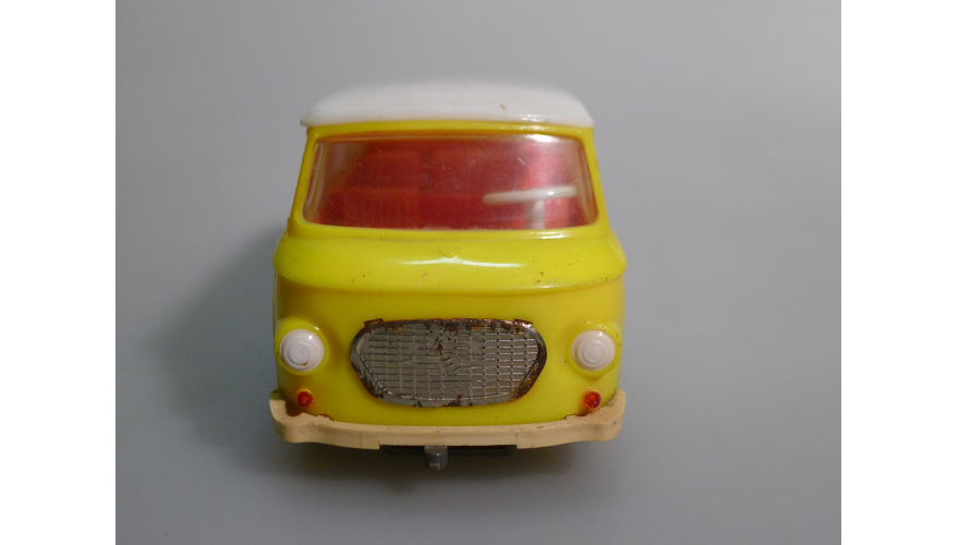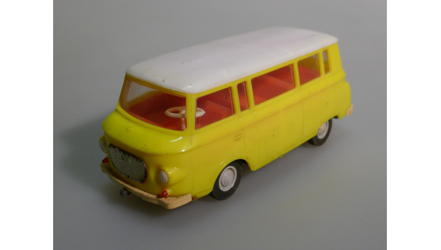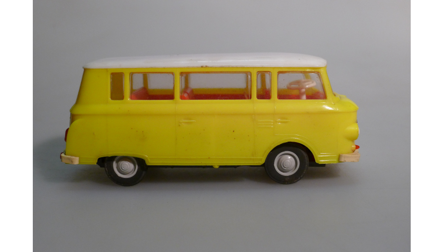 Игрушка производства ГДР 70-80 годы. Инерционный автобус, поздний. Длина 18 см., высота 7 см., ширина 8 см. Игрушка не продается, коллекция музея «ХОББИПЛЮС».