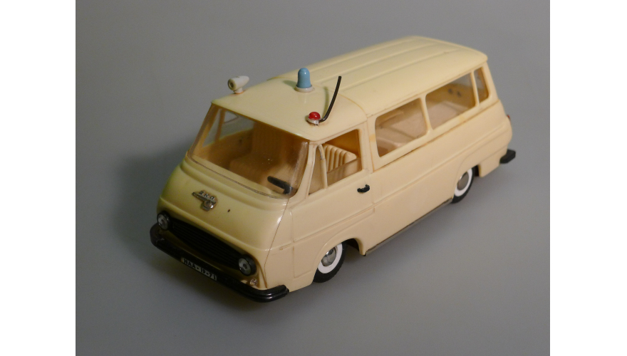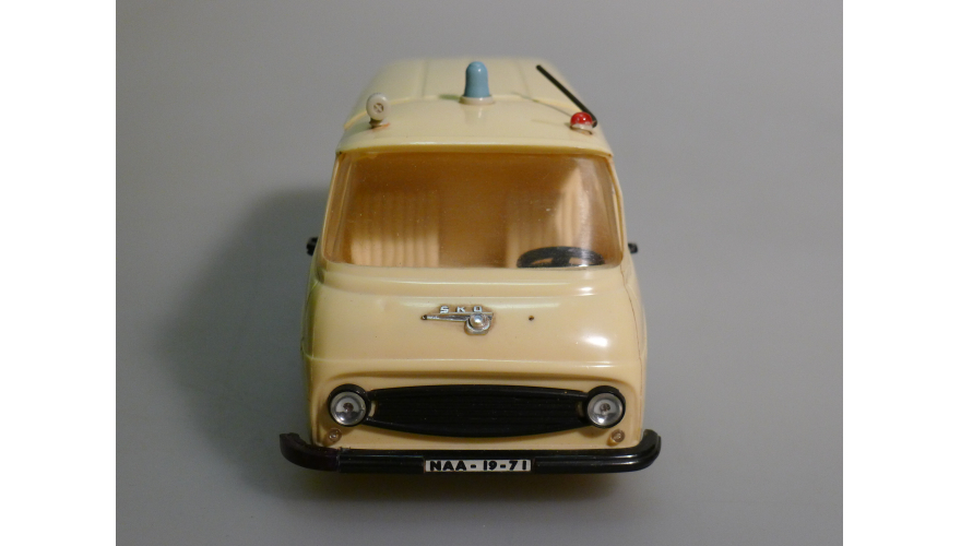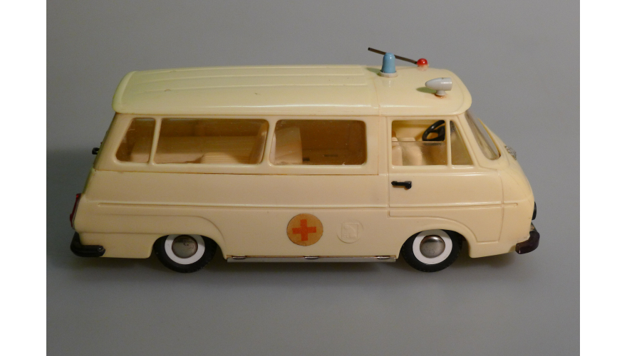 Игрушка производства ГДР 70-80 годы. Инерционный автомобиль Шкода скорая помощь. Длина 22 см., высота 10 см., ширина 9 см. Игрушка не продается, коллекция музея «ХОББИПЛЮС».