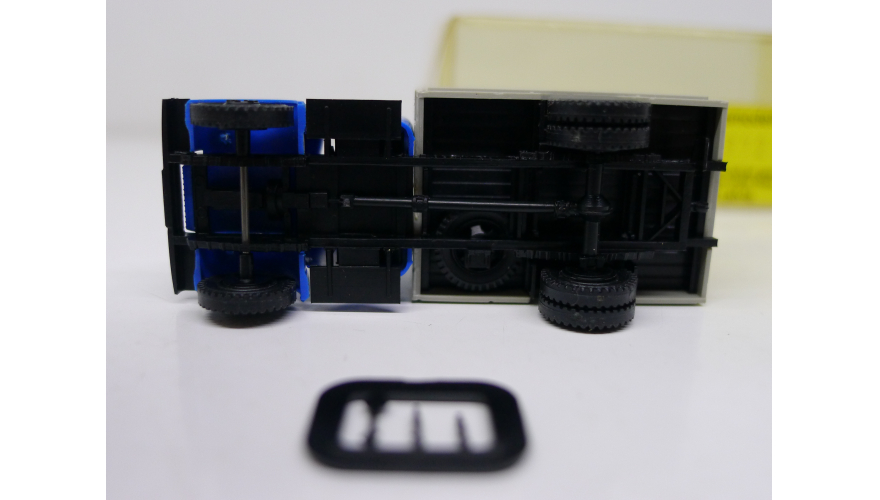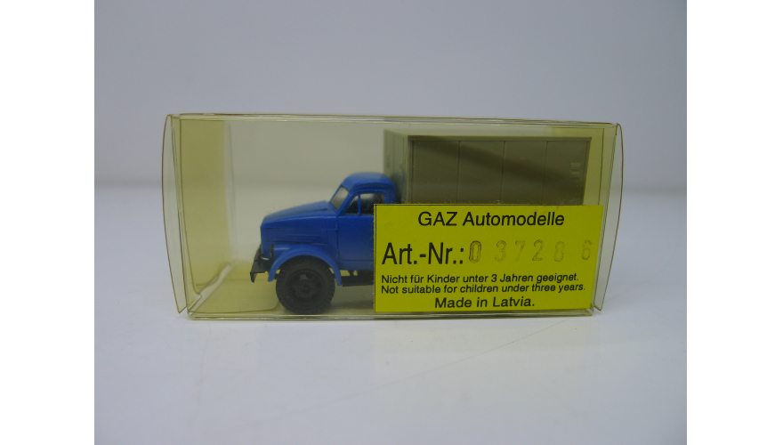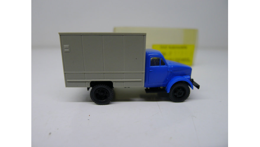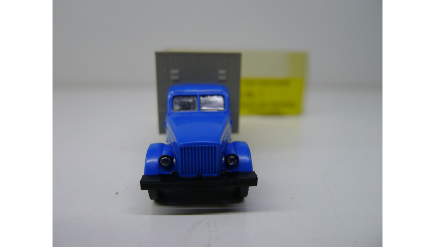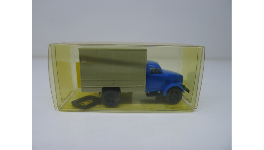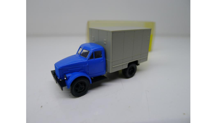 Модель автомобиля Газ-51 серый фургон синяя кабина, масштаб 1:87, HO, производства Латвия.