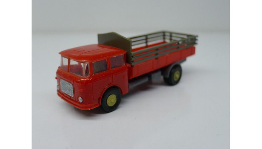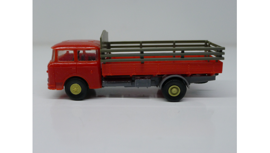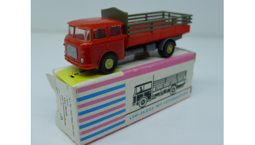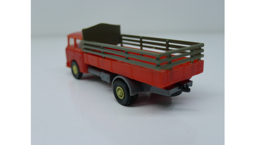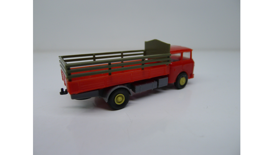Модель автомобиля Шкода бортовая красно-серая, масштаб 1:87. Производства ГДР 70-80 годы. Модель не продается из коллекции музея «ХОББИПЛЮС».