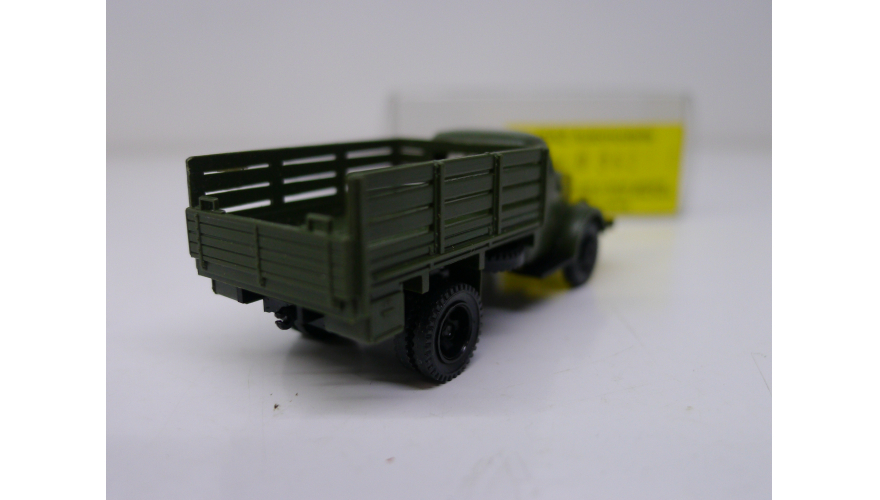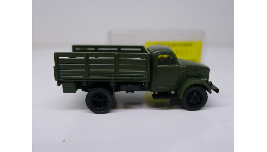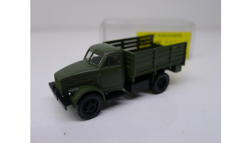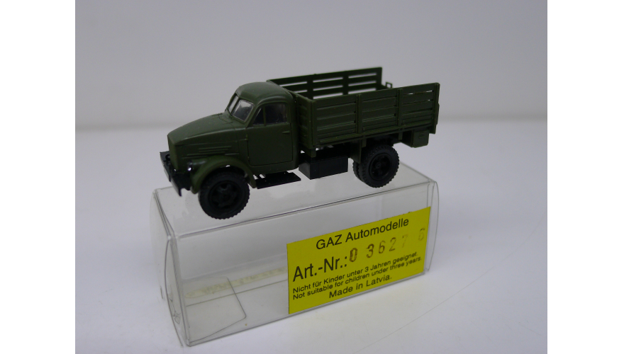 Модель автомобиля Газ-51 с высоким бортом, хаки, масштаб 1:87, HO, производства Латвия.