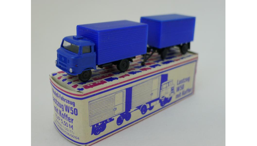 Модель автомобиля Ифа фургон прицеп фургон, масштаб 1:120. Производства ГДР 70-80 годы. Модель не продается из коллекции музея «ХОББИПЛЮС».