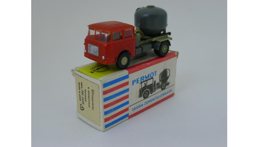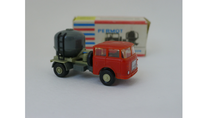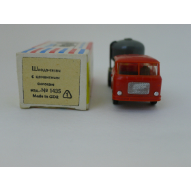 Модель автомобиля Шкода бетономешалка красная кабина, масштаб 1:87. Производства ГДР 70-80 годы. Модель не продается из коллекции музея «ХОББИПЛЮС».