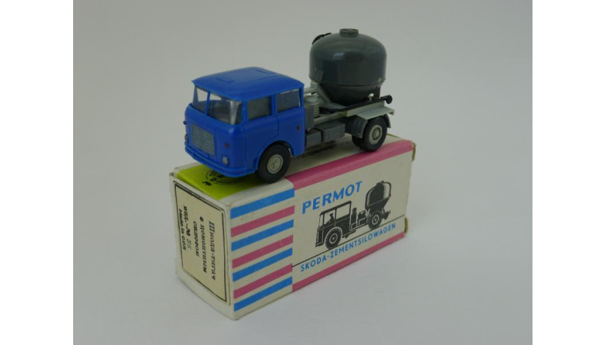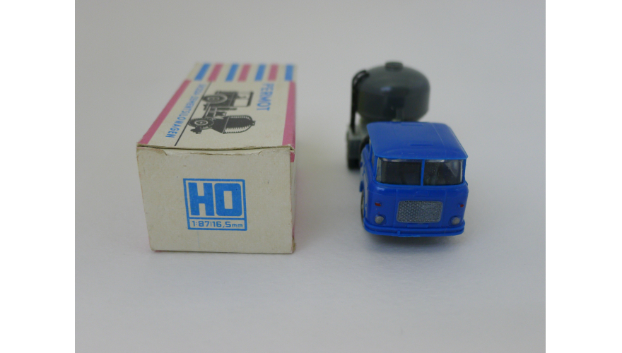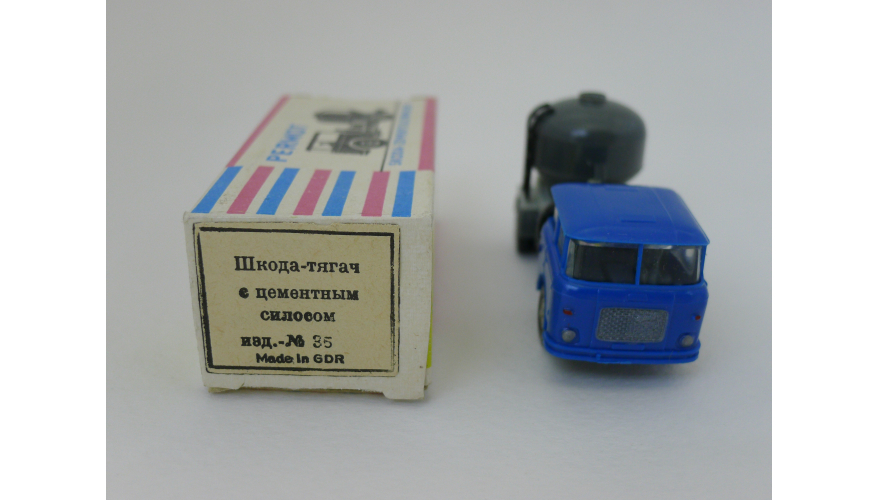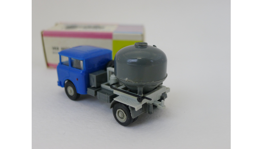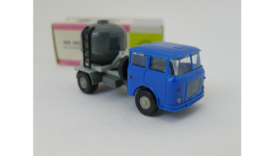 Модель автомобиля Шкода бетономешалка синяя кабина, масштаб 1:87. Производства ГДР 70-80 годы. Модель не продается из коллекции музея «ХОББИПЛЮС».