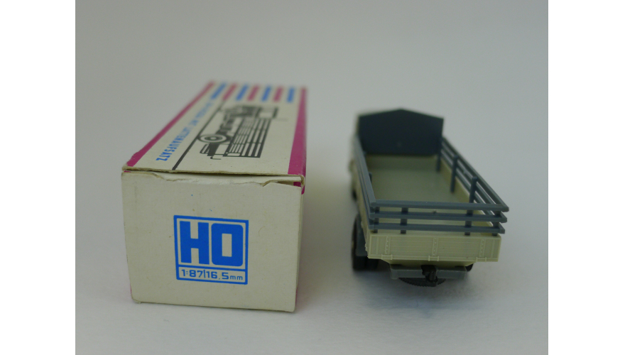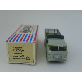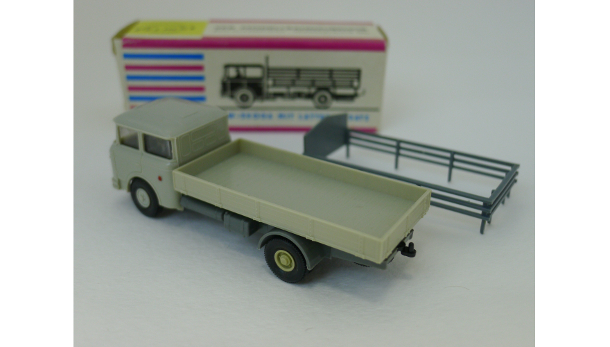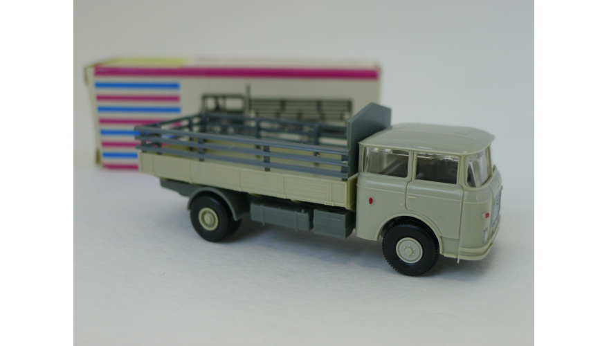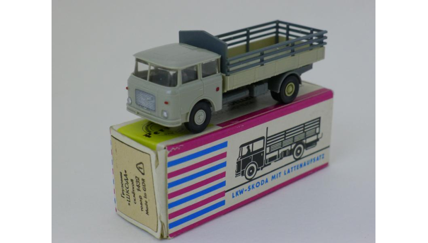Модель автомобиля Шкода бортовая серая кабина, масштаб 1:87. Производства ГДР 70-80 годы. Модель не продается из коллекции музея «ХОББИПЛЮС».