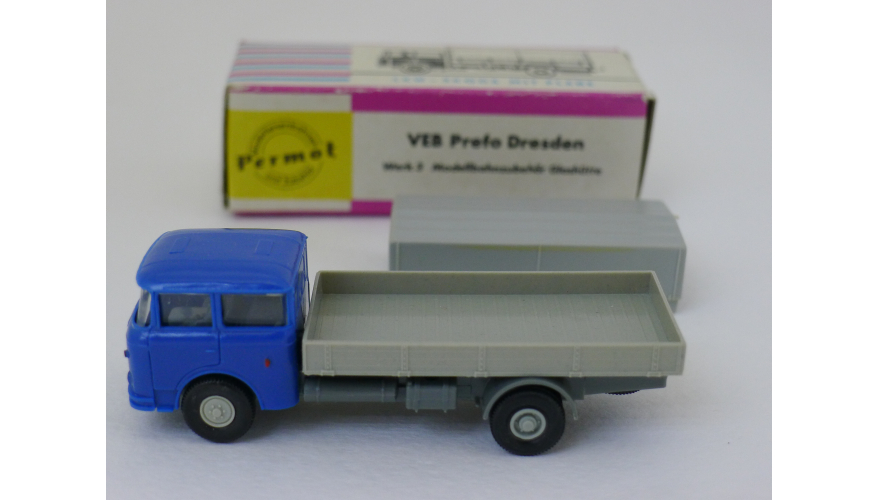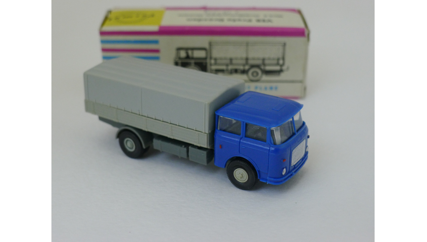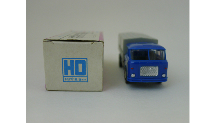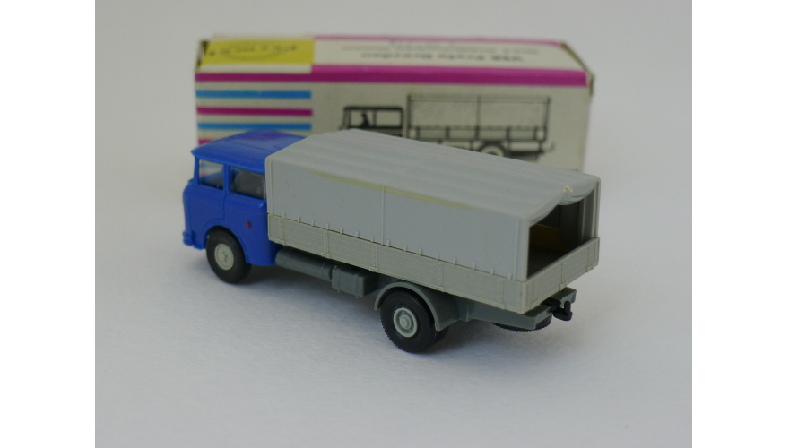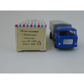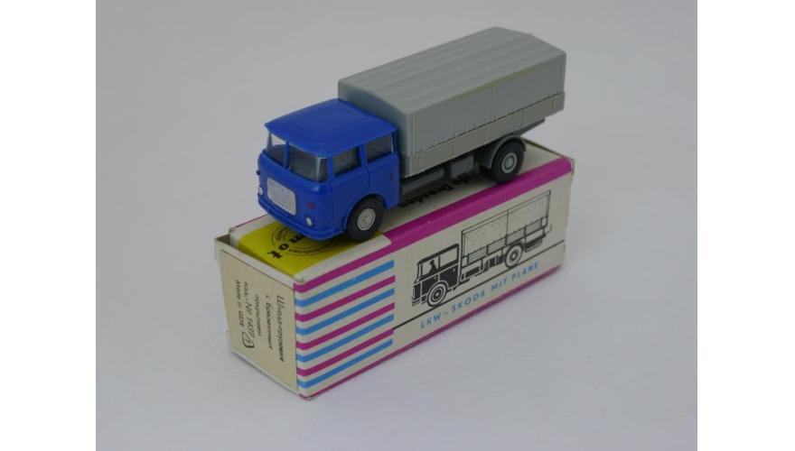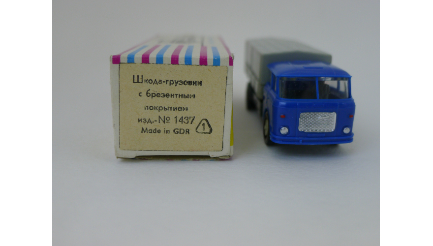 Модель автомобиля Шкода тент синяя кабина, масштаб 1:87. Производства ГДР 70-80 годы. Модель не продается из коллекции музея «ХОББИПЛЮС».