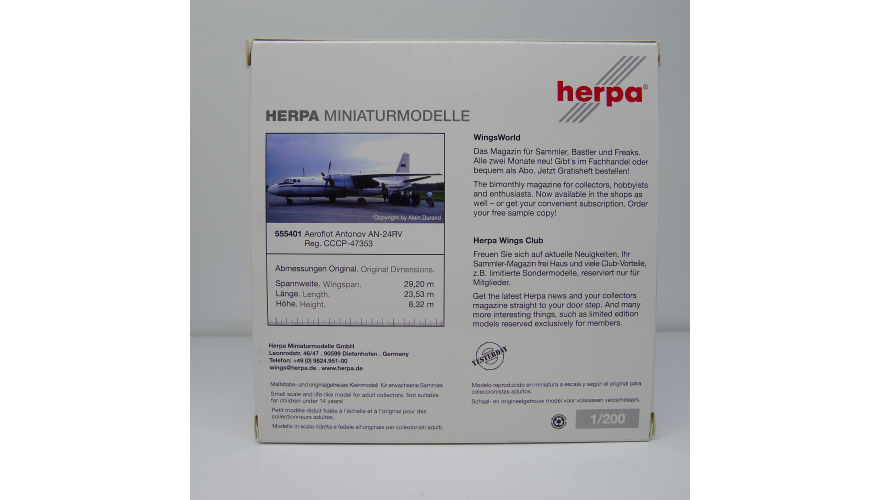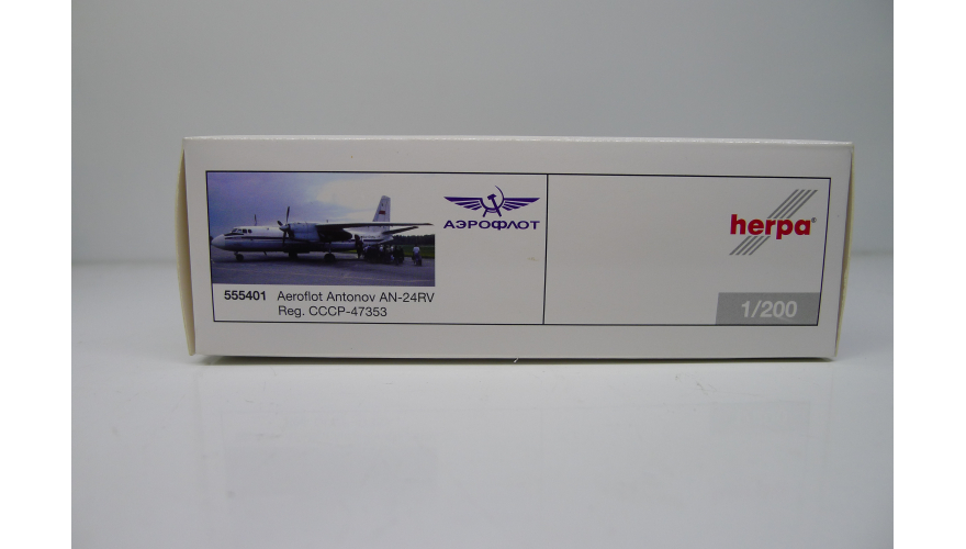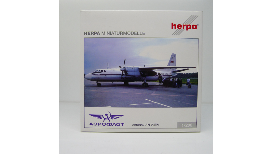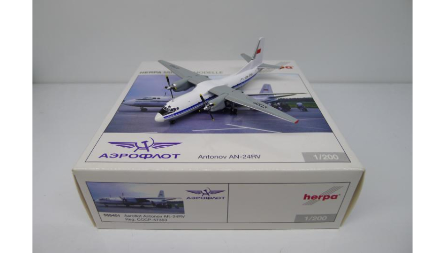 Модель самолета Ан-24 АЭРОФЛОТ СССР, масштаб 1:200 металл, HERPA 555401. Модель не продается из онлайн музея «ХОББИПЛЮС»