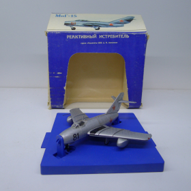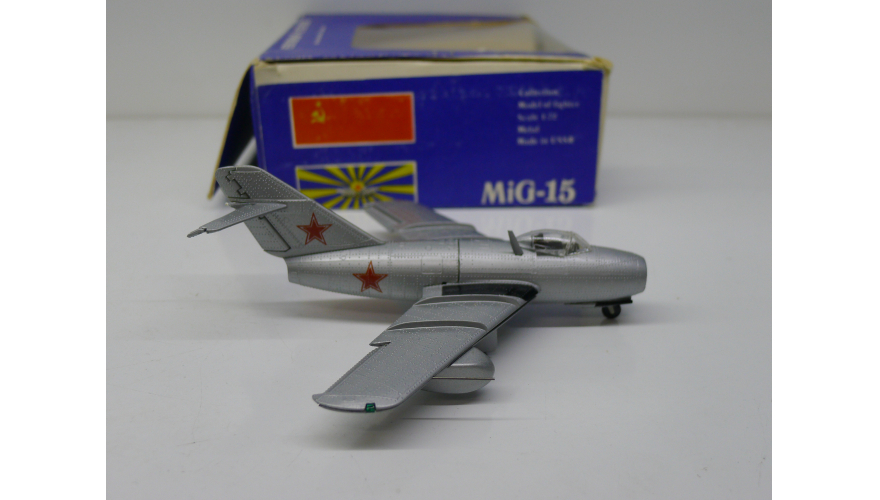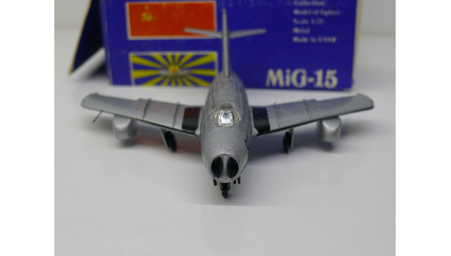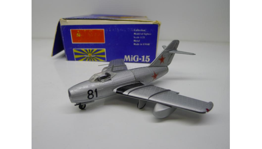 Модель самолета Миг-15, масштаб 1:72, сделанная в СССР в 80-х годах, металл. Убираются шасси.