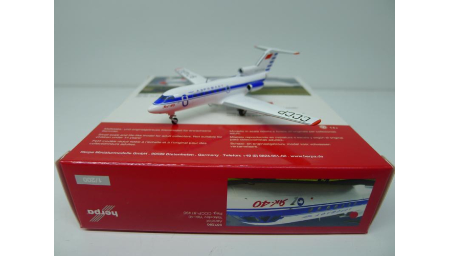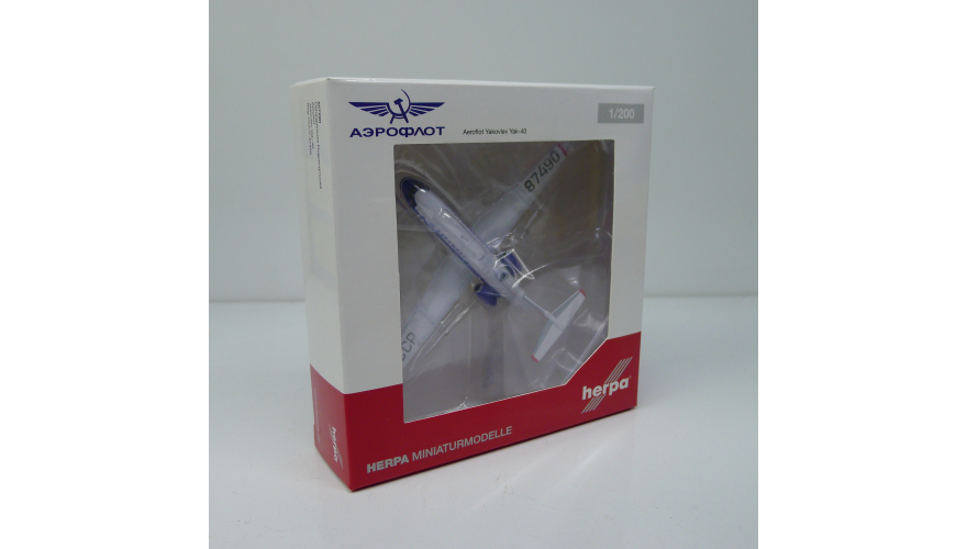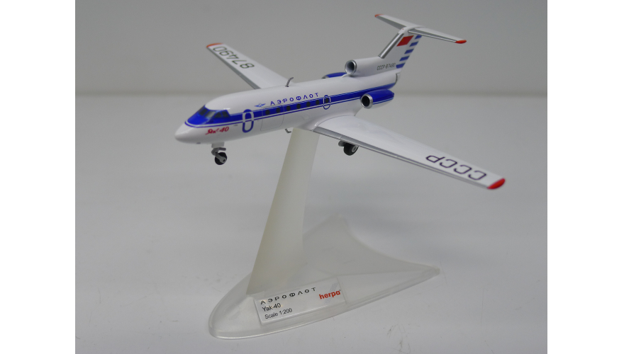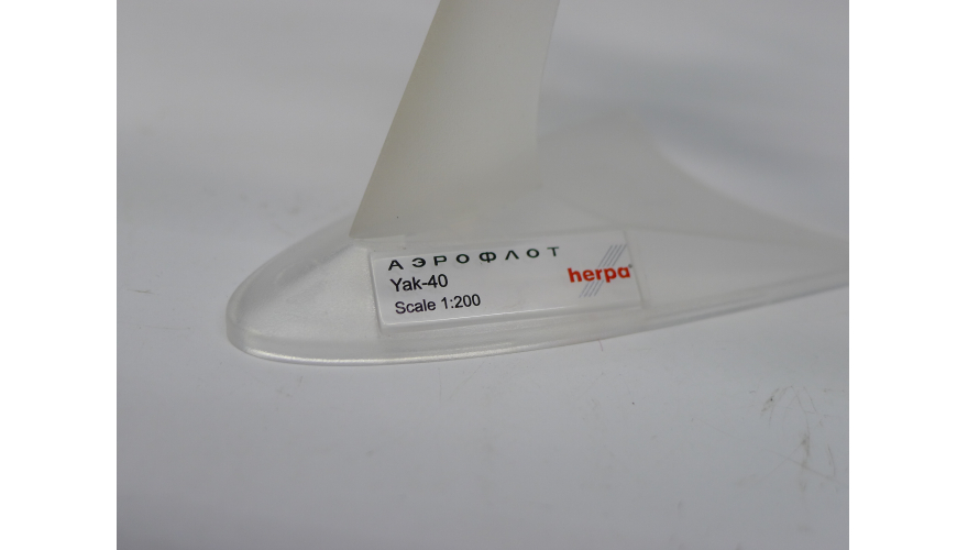 Модель самолета Як-40 АЭРОФЛОТ СССР, масштаб 1:200 металл, HERPA 557290. Модель не продается из онлайн музея «ХОББИПЛЮС»