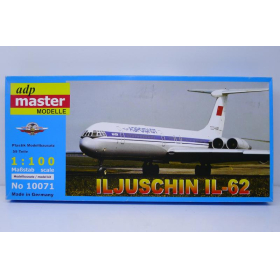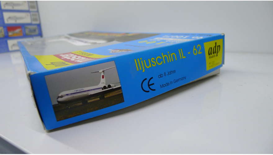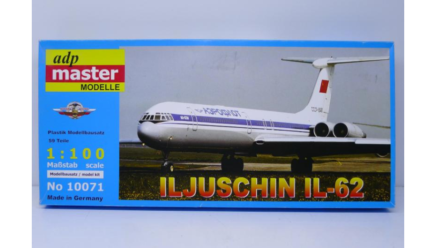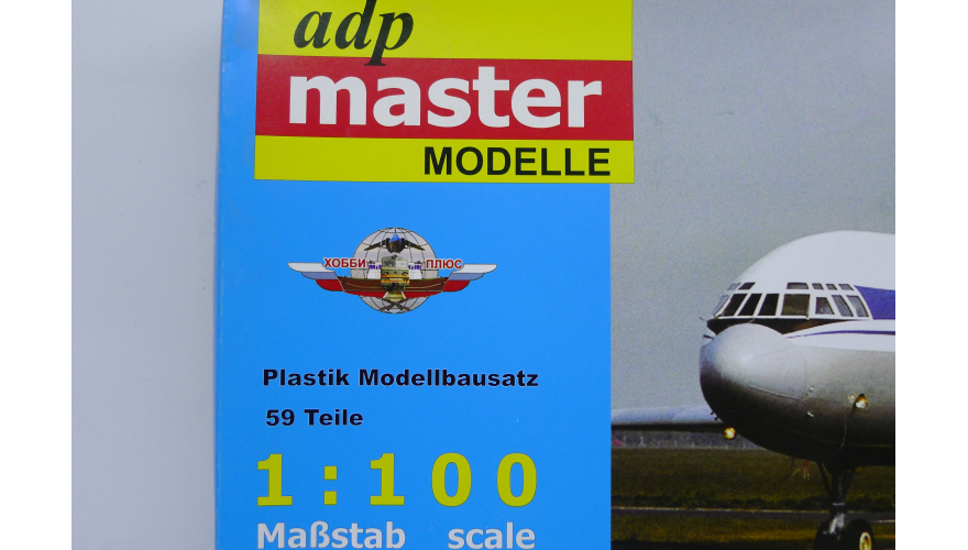 Сборная модель самолета Ил-62 АЭРОФЛОТ СССР, Германия, масштаб 1:100, с логотипом «ХОББИПЛЮС».