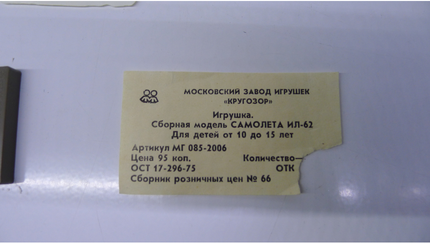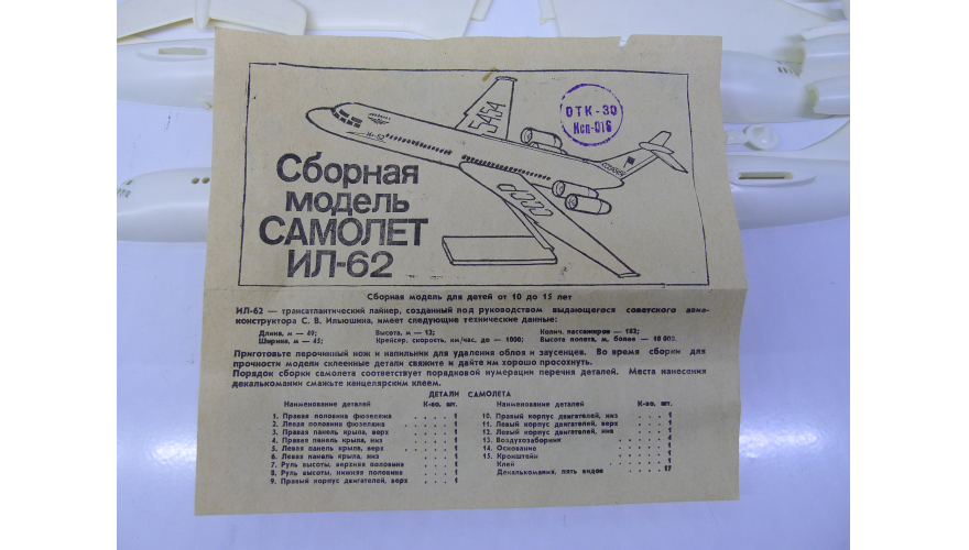 Сборная модель самолета Ил-62, Московский завод «Кругозор» СССР 70 годы.