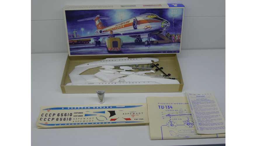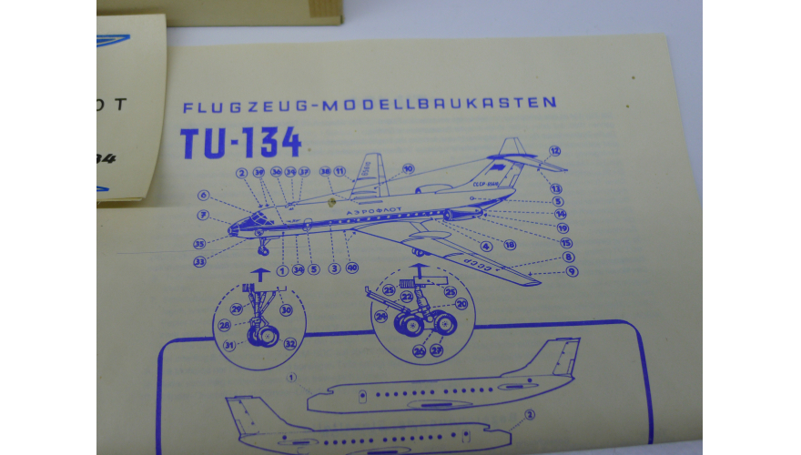 Сборная модель самолета Ту-134 Пластикарт ГДР, масштаб 1:100, выпуска 80 годов. Модель не продается из коллекции музея «ХОББИПЛЮС»