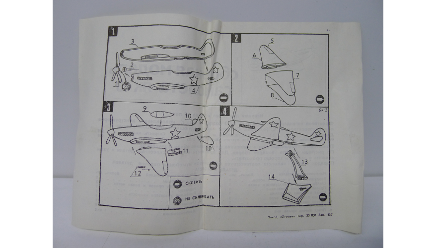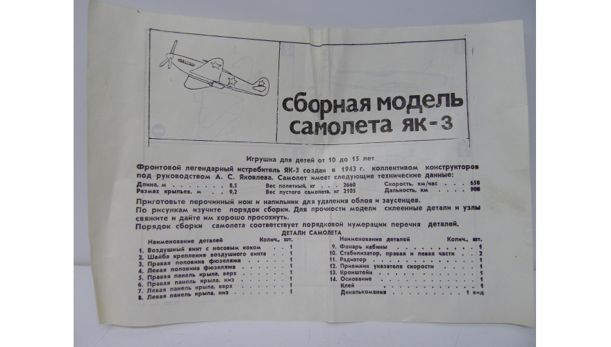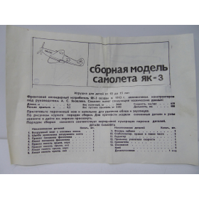 Сборная модель самолета Як-3, Московский завод «Кругозор» СССР 70 годы.