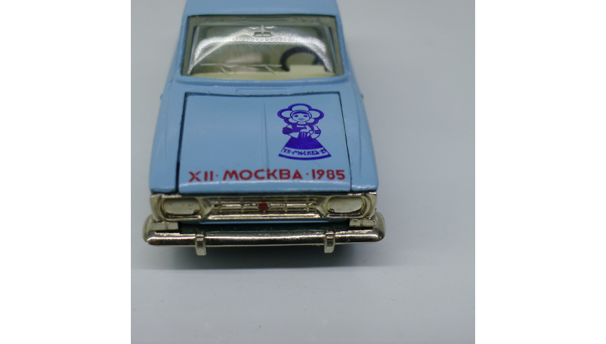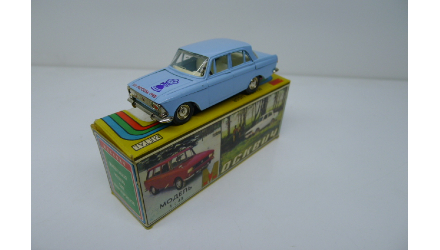 Модель автомобиля Москвич-408 голубой Фестиваль Москва 1985 г. Производства СССР 80 годы. Модель не продается из коллекции музея «ХОББИПЛЮС»
