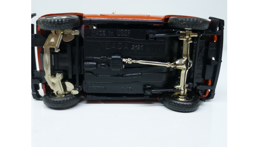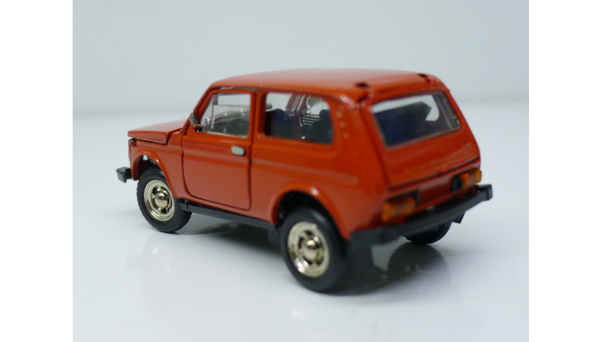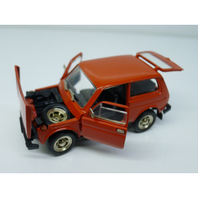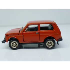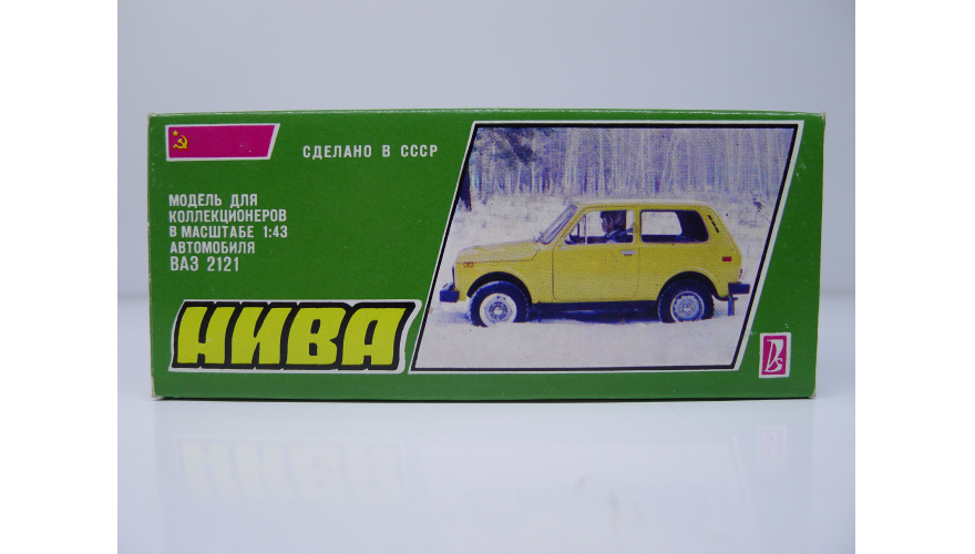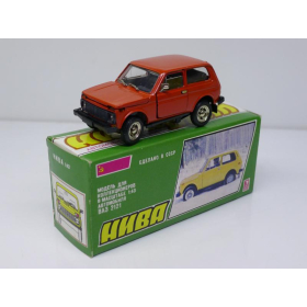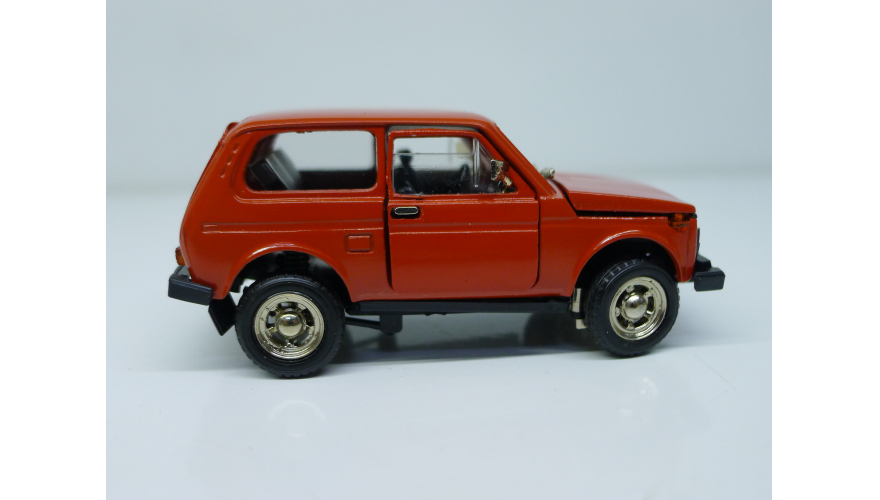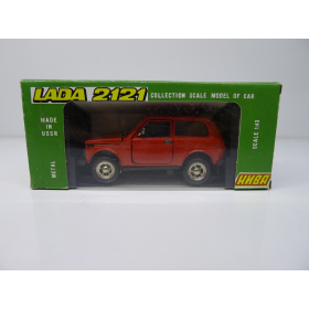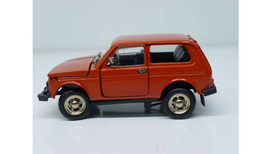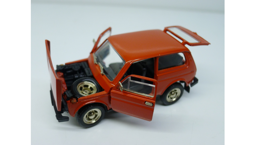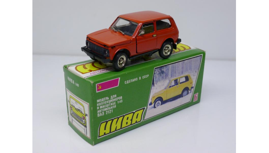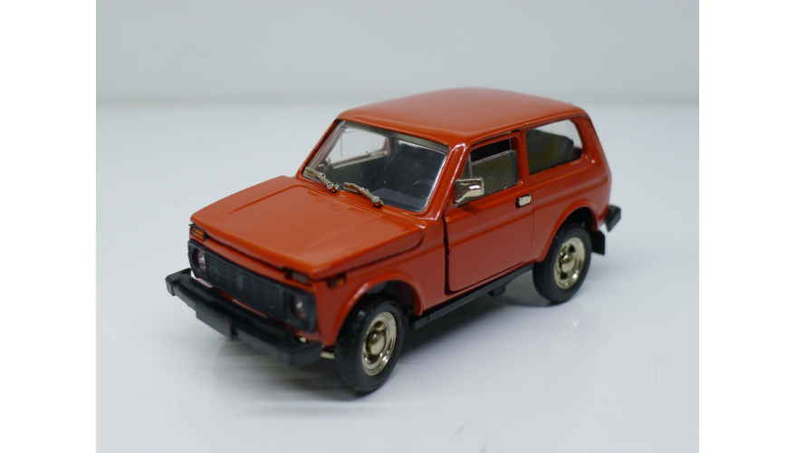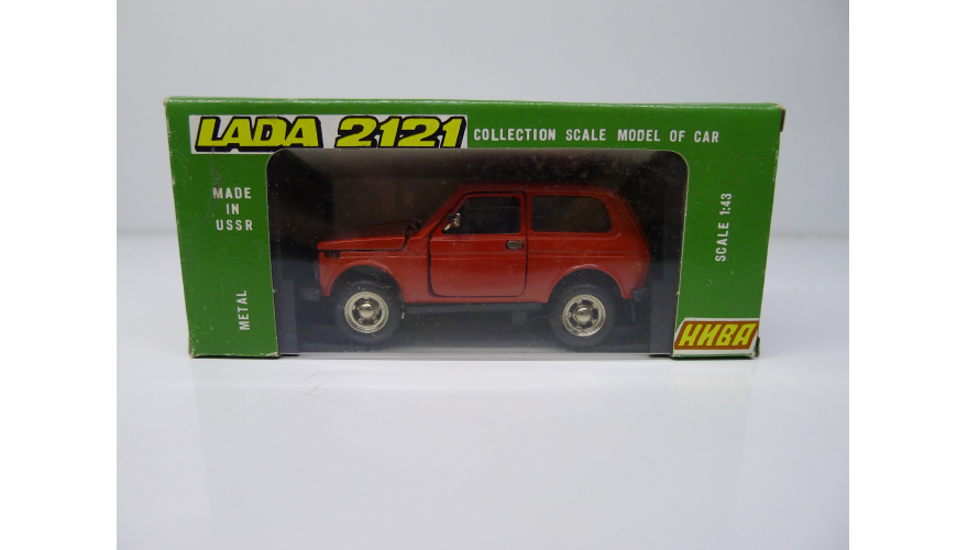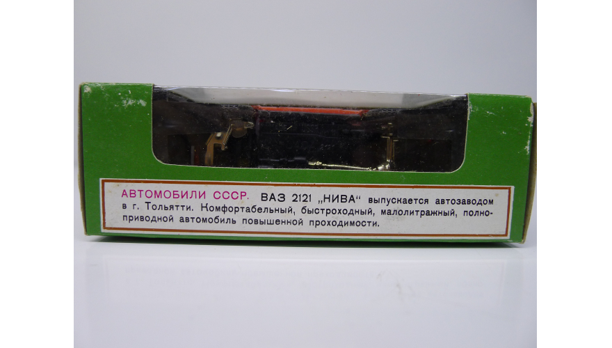 Модель автомобиля Нива ВАЗ 2121 красная в оригинальной коробке. Производства Россия 1997 г. Модель не продается из коллекции музея «ХОББИПЛЮС»
