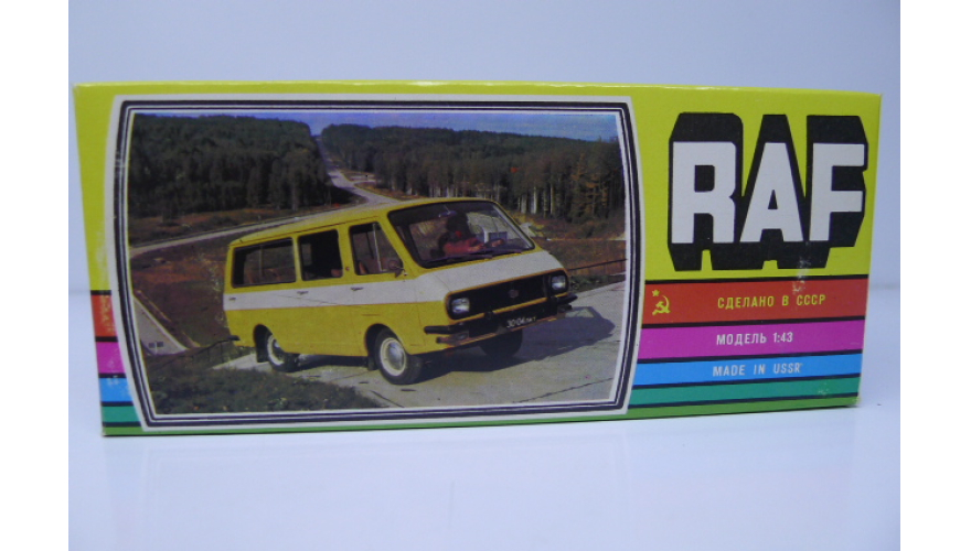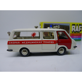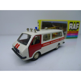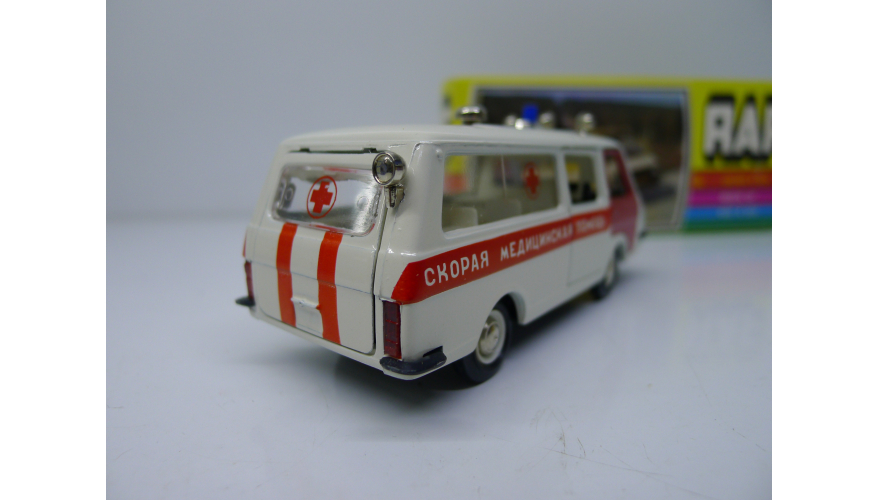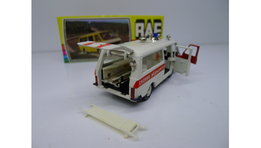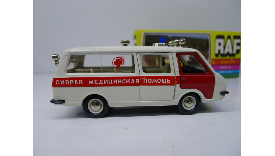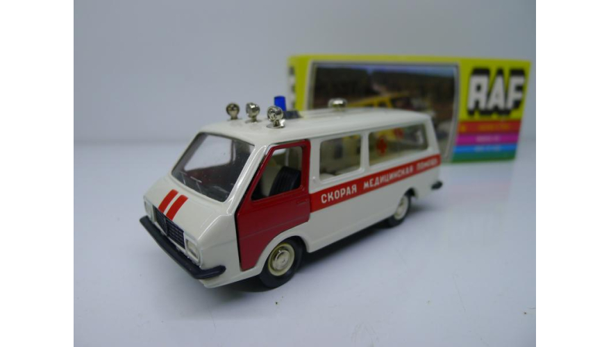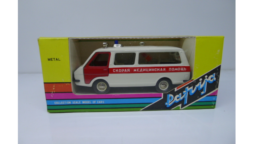 Модель автомобиля Раф скорая помощь, масштаб 1:43, сделанная в СССР 1988 году.