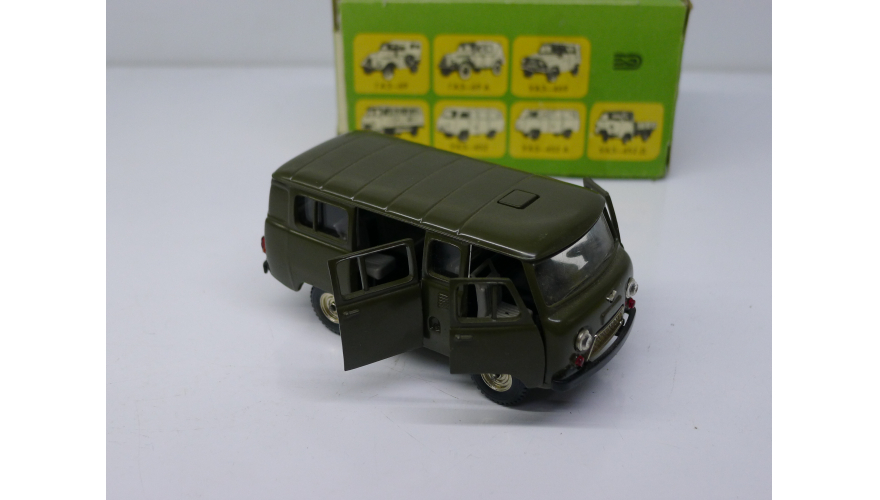 Модель автомобиля Уаз 452В, сделанный в России 90 г., металл, масштаб 1:43. Открываются двери.