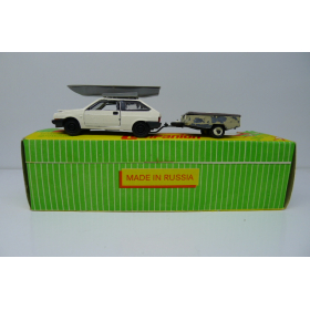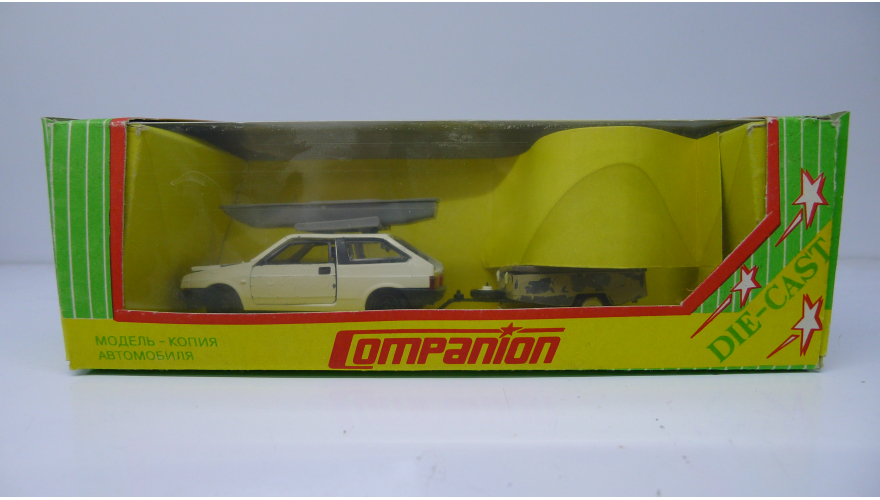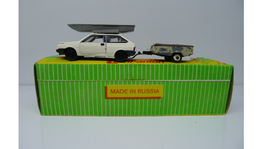 Модель автомобиля Ваз-2108 со скифом, сделанная в России 90 г., металл-пластик, масштаб 1:43. Открываются двери, капот, багажник, не качественный окрас и литье.