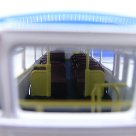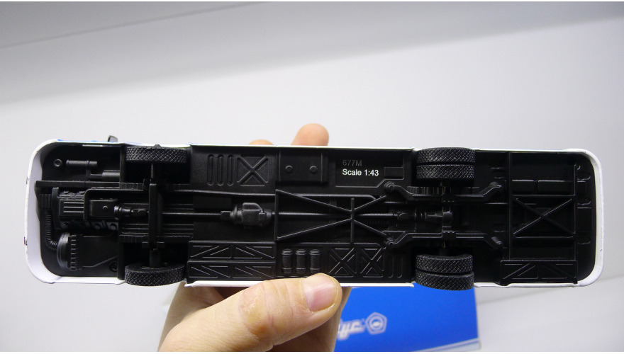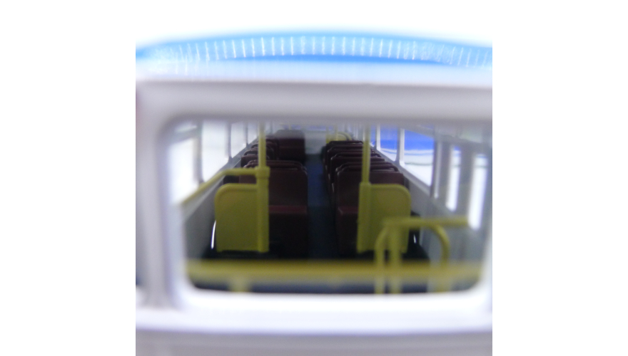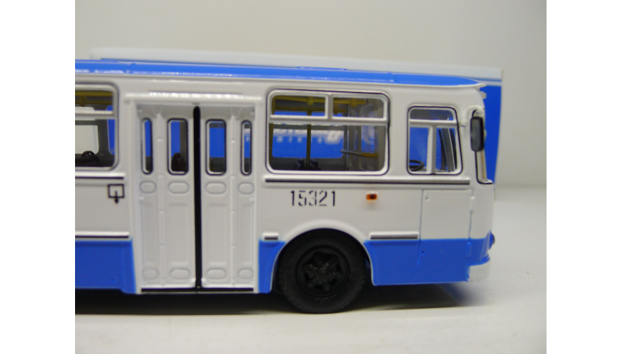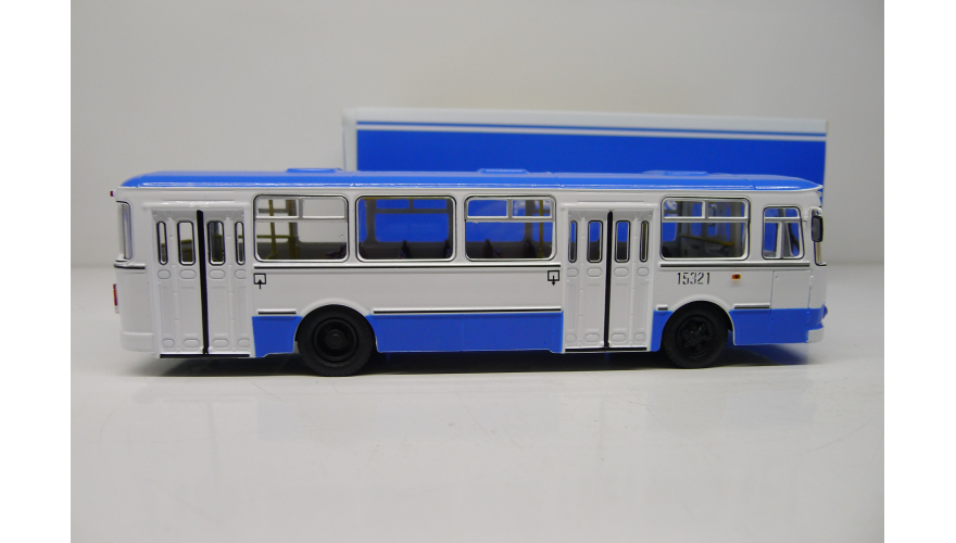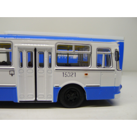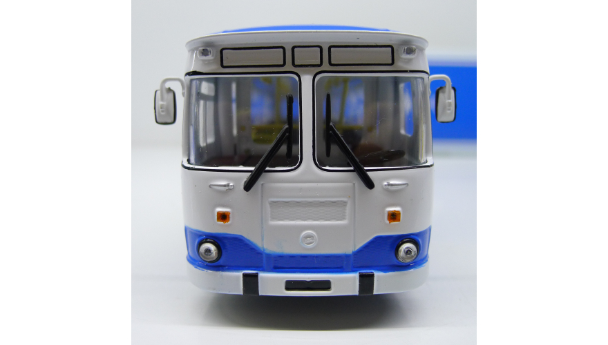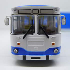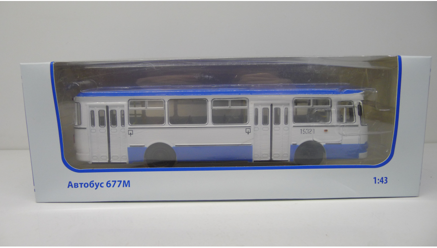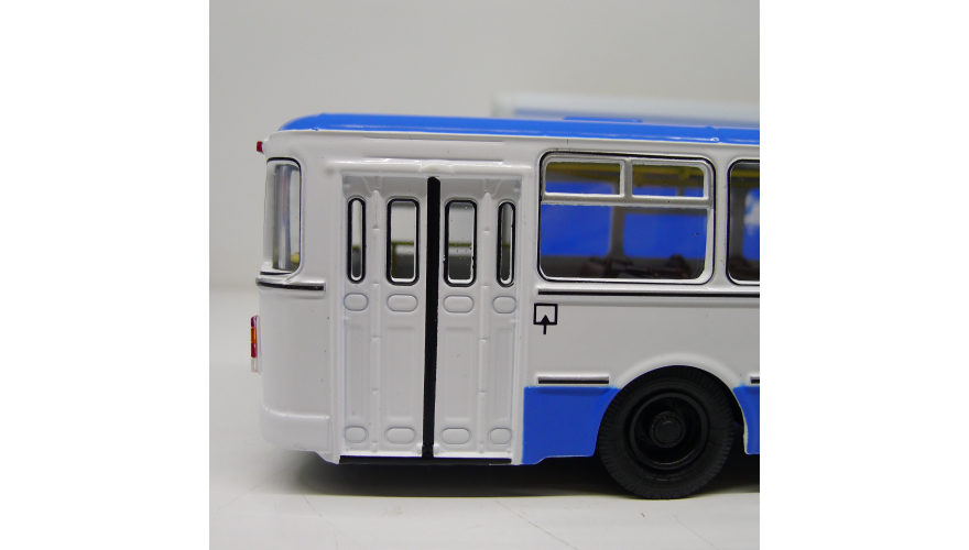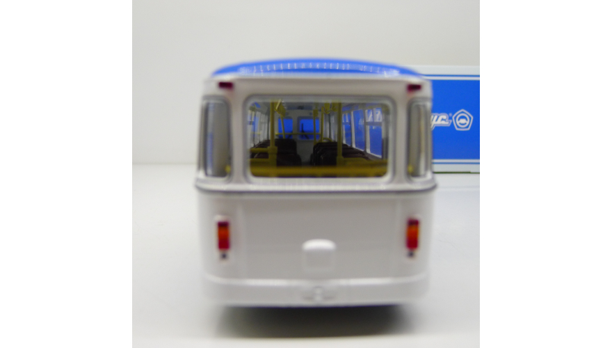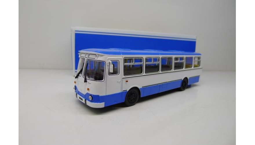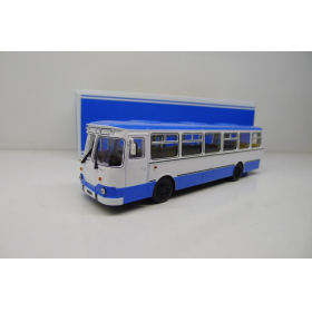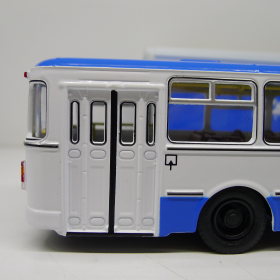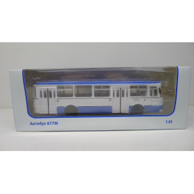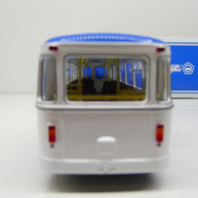 Модель Советского городского автобуса Лиаз-677М, масштаб 1:43, бело-синий, металл.