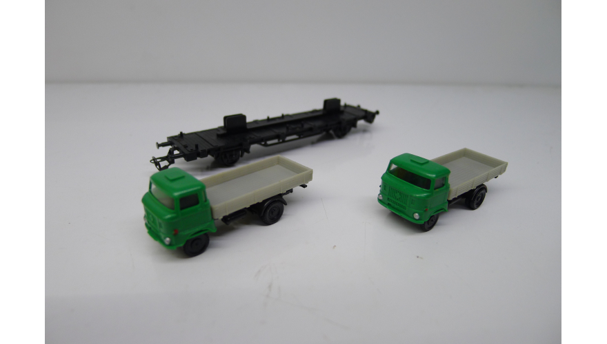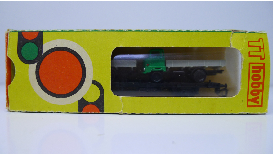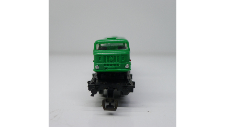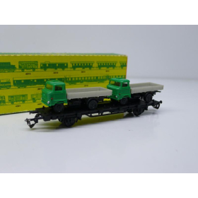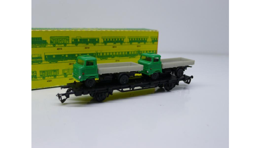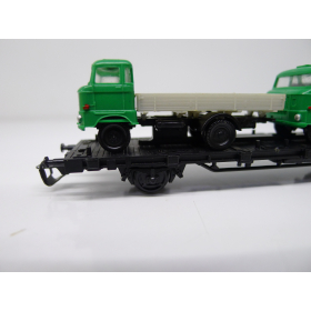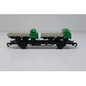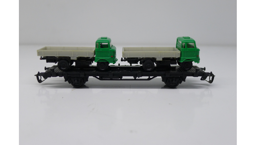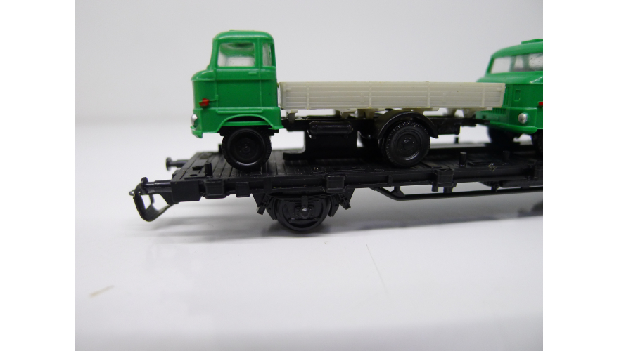 Железнодорожная платформа с грузовыми автомобилями, масштаб 1:120, TT, производства ГДР 70 годы.