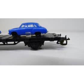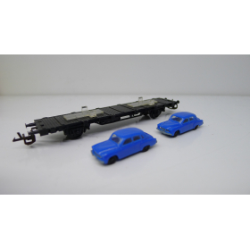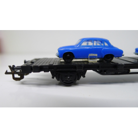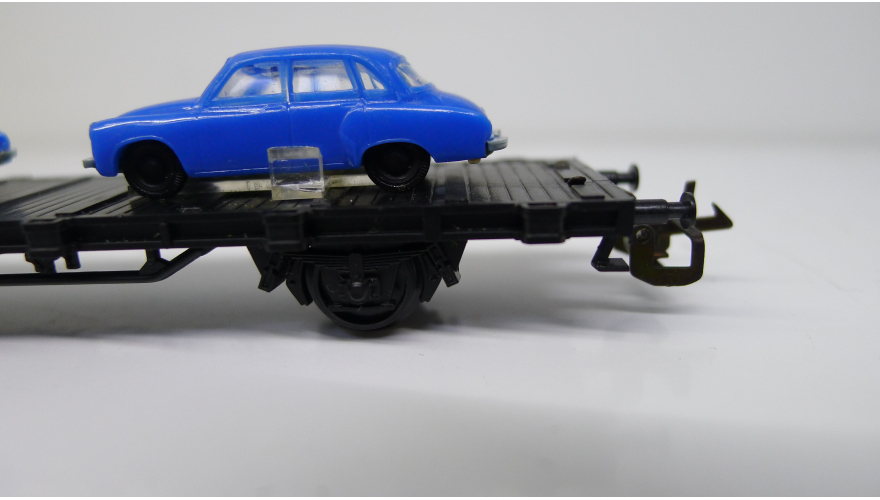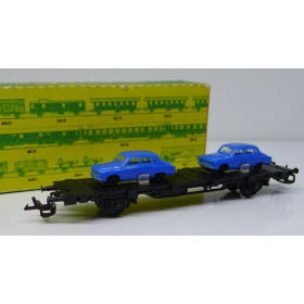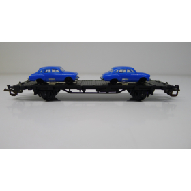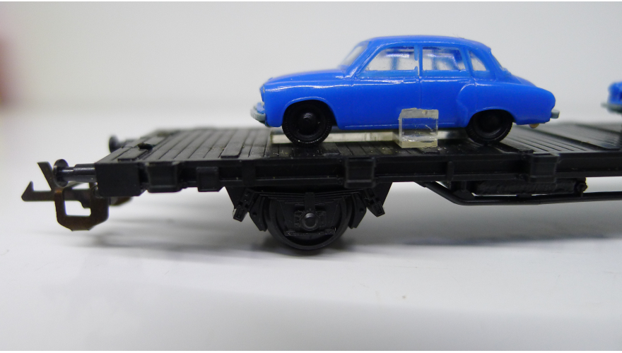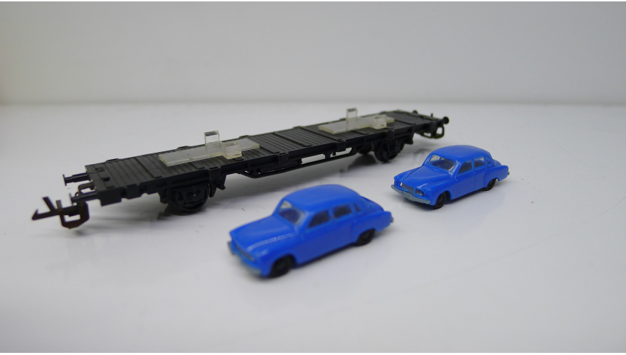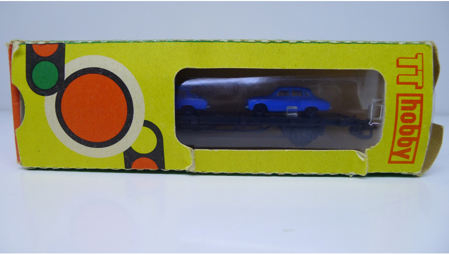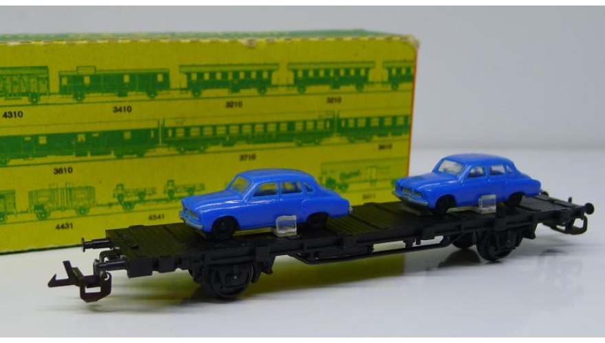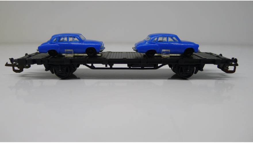 Железнодорожная платформа с легковыми автомобилями, масштаб 1:120, TT, производства ГДР 70 годы.